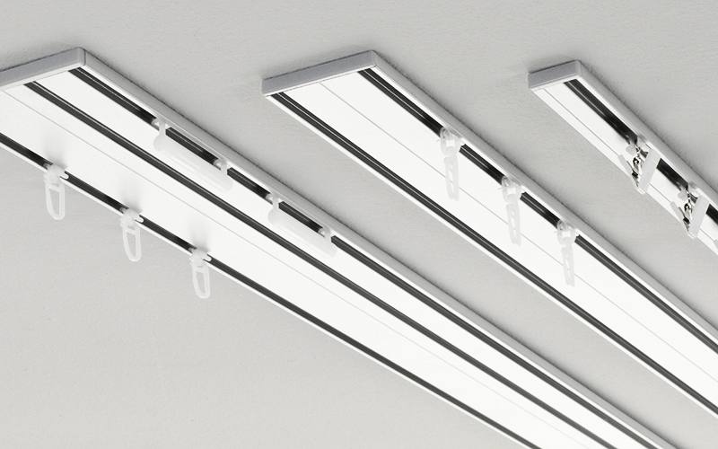 Immer sicher in der Spur für den perfekten Schwung – dafür sorgen unsere Gardinenschienen. Dank moderner Technik gelingt die Montage schnell und einfach. Zusätzliche Elemente wie Blenden, Winkelführungen und Anzahl der Laufkanäle zaubern das gewünschte Raumambiente.