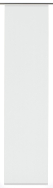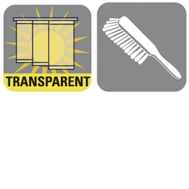 The panel curtain Entry consists of 87% polyester and 13% nylon. The fabric has a translucent, transparent quality and by means of the special weaving technique creates an interesting fabric structure. The panel fabric Entry is supplied with self-adhesive loop tape (supplied loose) and can therefore be easily shortened from above before fitting. The bottom of the panel fabric has a sewn hemstitch for inserting a weighting profile. For maintenance, the fabric can be carefully brushed with a brush or feather duster or wiped with a damp cloth (without detergent).