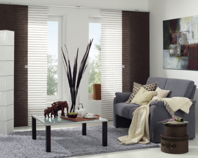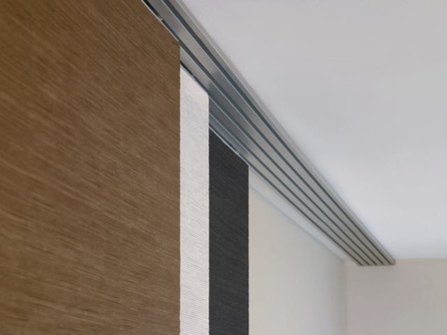 Fabric 65% paper, 21% polyester, 14% jute, finished, loop strip sewn-in, incl. aluminium bottom profile, can be shortened from the bottom
