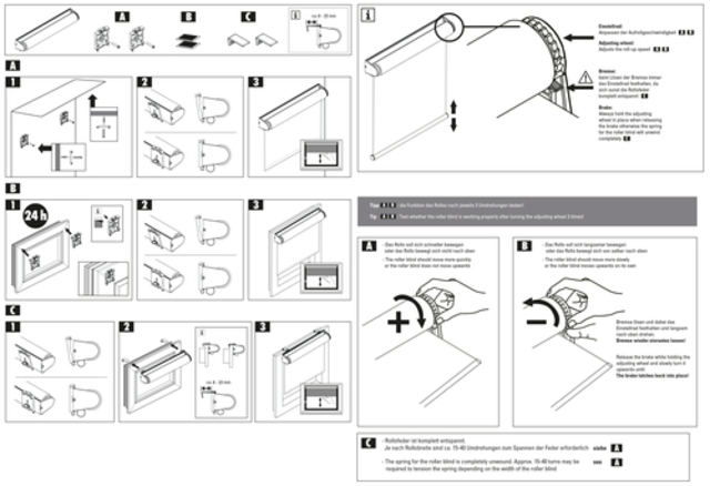 Weiteren Komfort bietet die Vielzahl an Montagemöglichkeiten. Im Lieferumfang enthalten sind Träger für die Klebe- oder Klemmmontage sowie Befestigungsmaterial um das Rollo an die Decke, Wand oder in eine Nische zu schrauben.