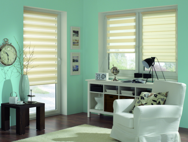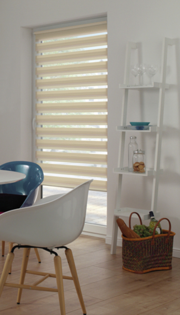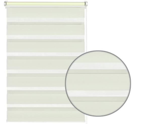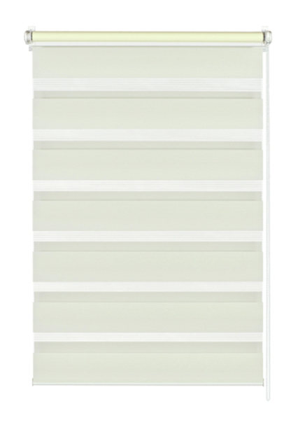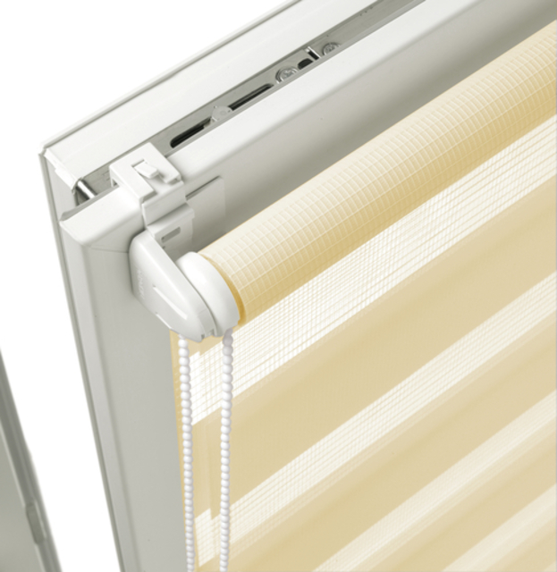 Das EASYFIX Doppelrollo lässt sich ohne Bohren und Schrauben am Fensterflügel befestigen. Die verstellbaren Klemmträger können für fast jeden Fensterflügel passend eingestellt und daran montiert werden. Eine Klebemontage ist ebenfalls möglich. Der Stoff ist abwechselnd in transparenten und blickdichten Streifen gewebt und verläuft doppelt gegeneinander. Sicht-und Lichteinfall können so sehr genau dosiert werden. Das EASYFIX Doppelrollo wird mittels einer Kette auf- und abgerollt. Die Kette kann rechts oder links montiert werden.